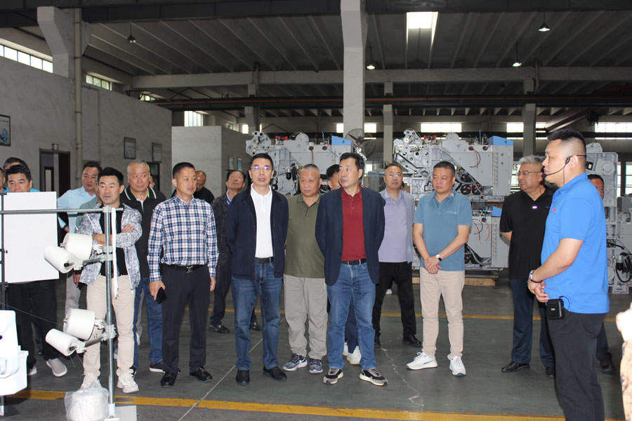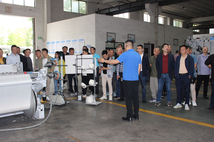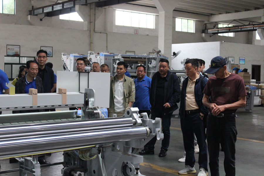 同時,來賓詳細參觀了天一紅旗紡機產(chǎn)品,尤其是自主創(chuàng)新研發(fā)的產(chǎn)品HQF001共軛凸輪打緯噴氣織機、噴水織機給予了高度認可。在李總的詳細講解下,商會一行深入生產(chǎn)一線,了解天一紅旗產(chǎn)品管控及質(zhì)量標準,對精準管理和高效產(chǎn)能給予成分肯定。